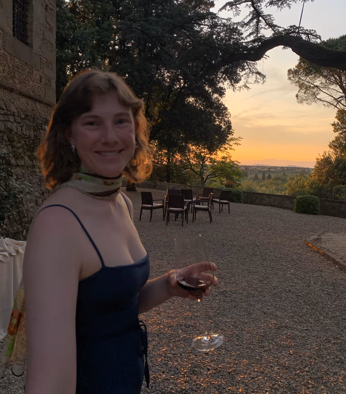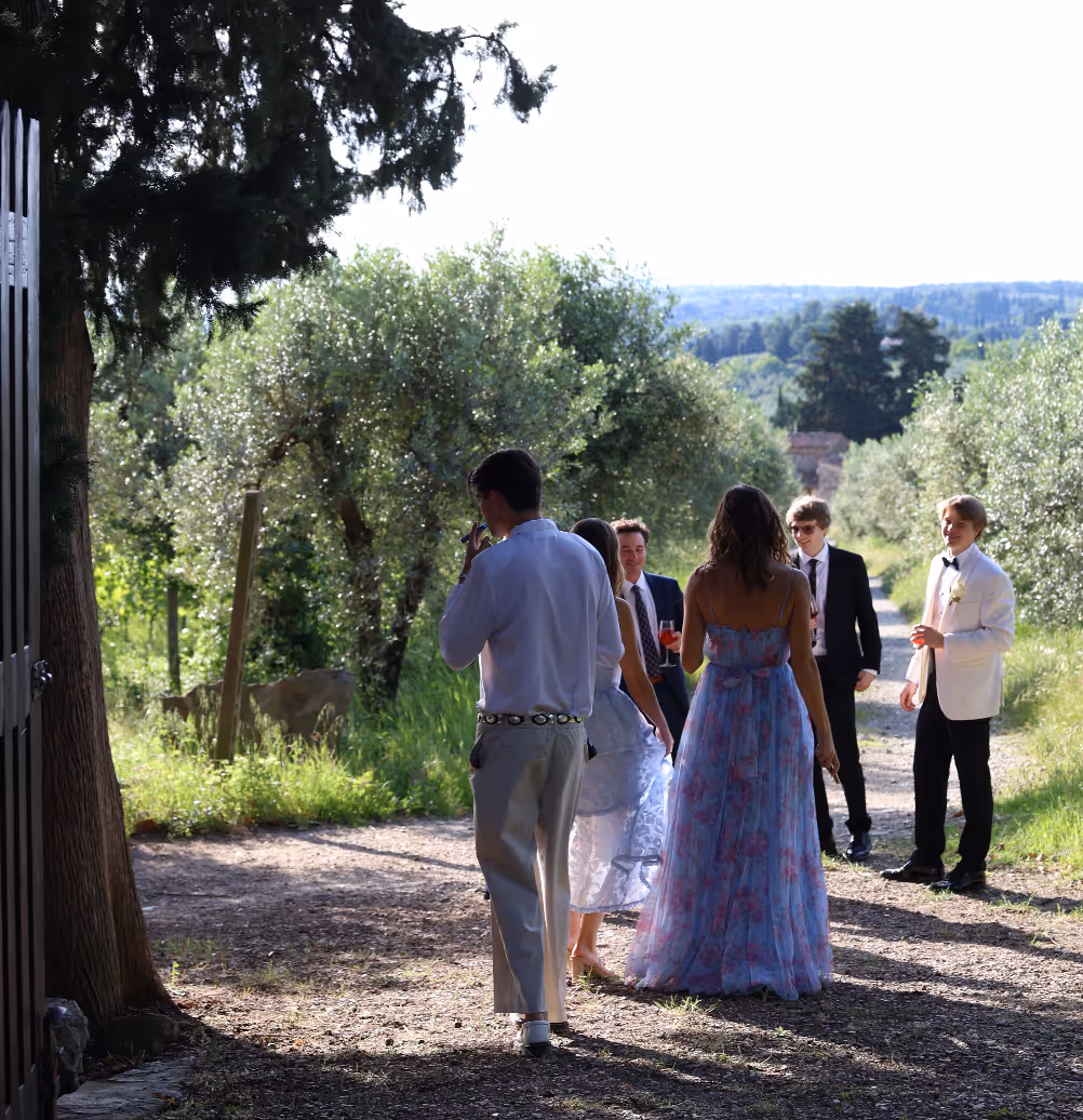 The venue was a castle, complete with views of rolling hills and—you guessed it—more vineyards! The highlight of the evening was the dessert assembled by the happy couple, to the song, “Felicitá,” by Al Bano and Romina Power. It was a millefoglie, a cake consisting of layers of flaky pastry and custard topped with fresh berries.