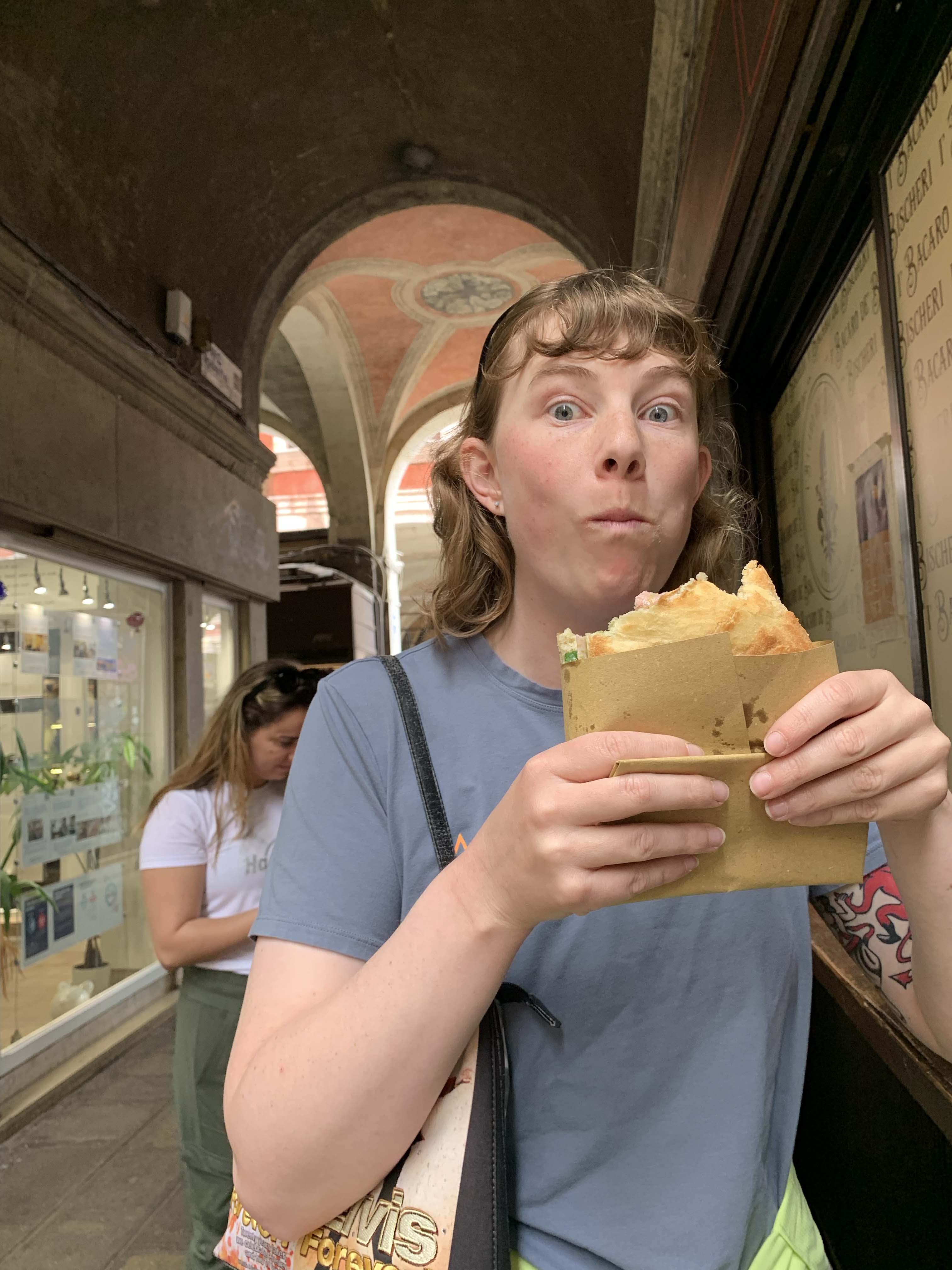 🥪 From there, it was a 9-minute walk to get a sandwich and wine at L' Bacaro de' Bischeri. This place ROCKED. We all just picked random things off the menu and everything was great.